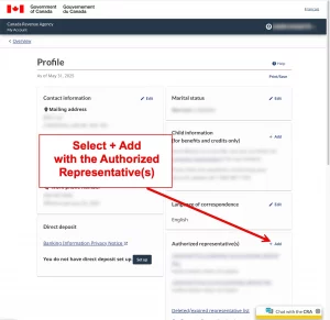 The following instructions outline the process for adding our firm as your Authorized Representative for your Personal Income Tax account with the Canada Revenue Agency.