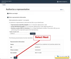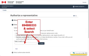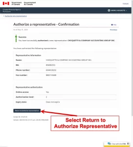 To add our firm as your Canada Revenue Agency Authorized Representative, please continue by: