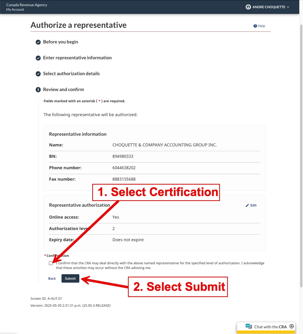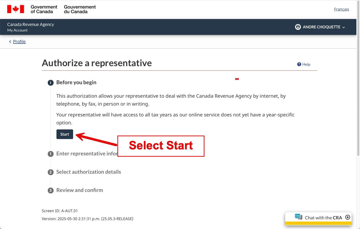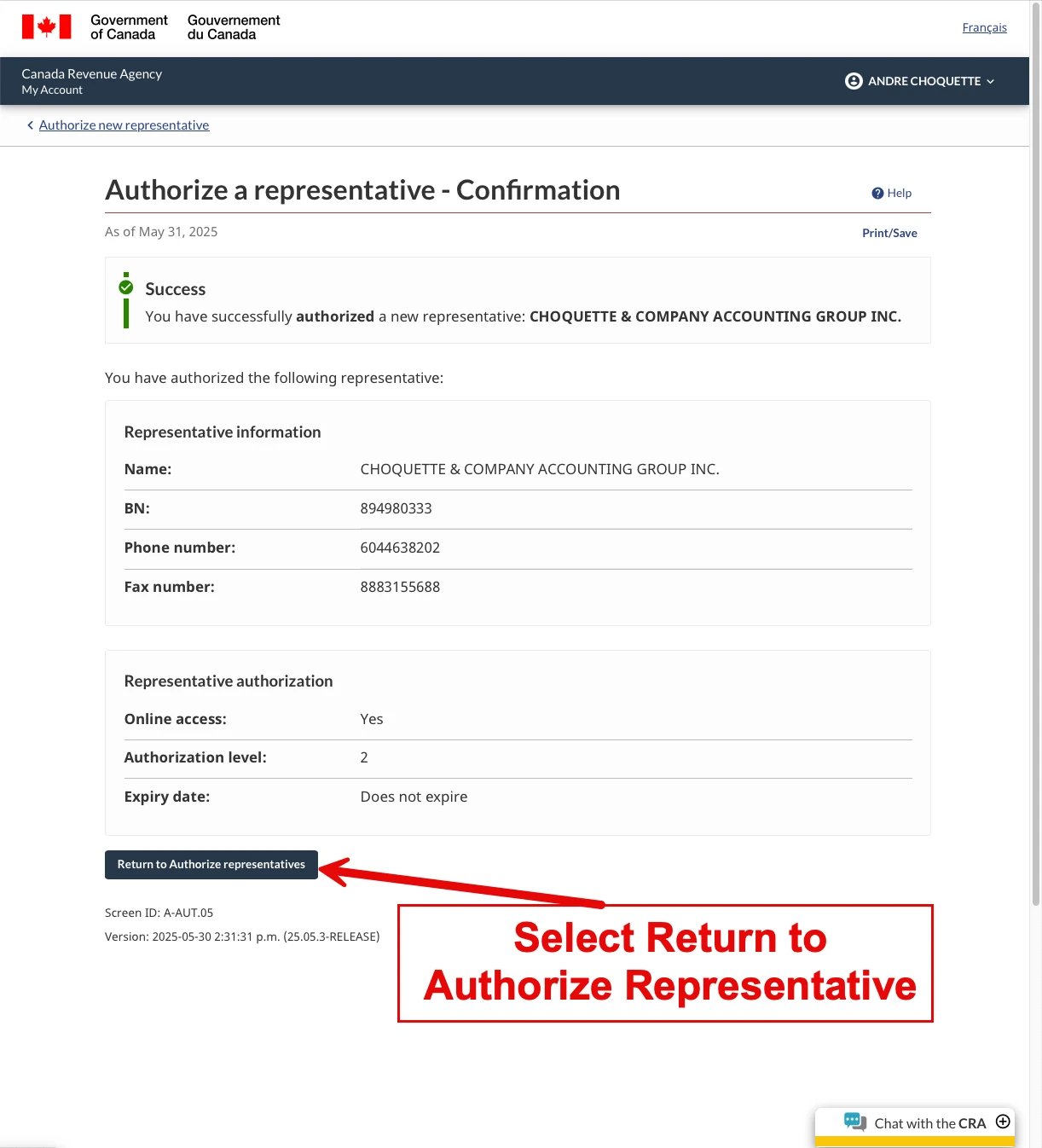To add our firm as your Canada Revenue Agency Authorized Representative, please continue by: